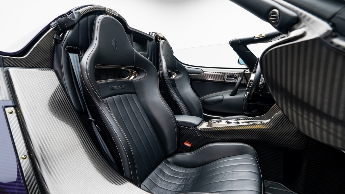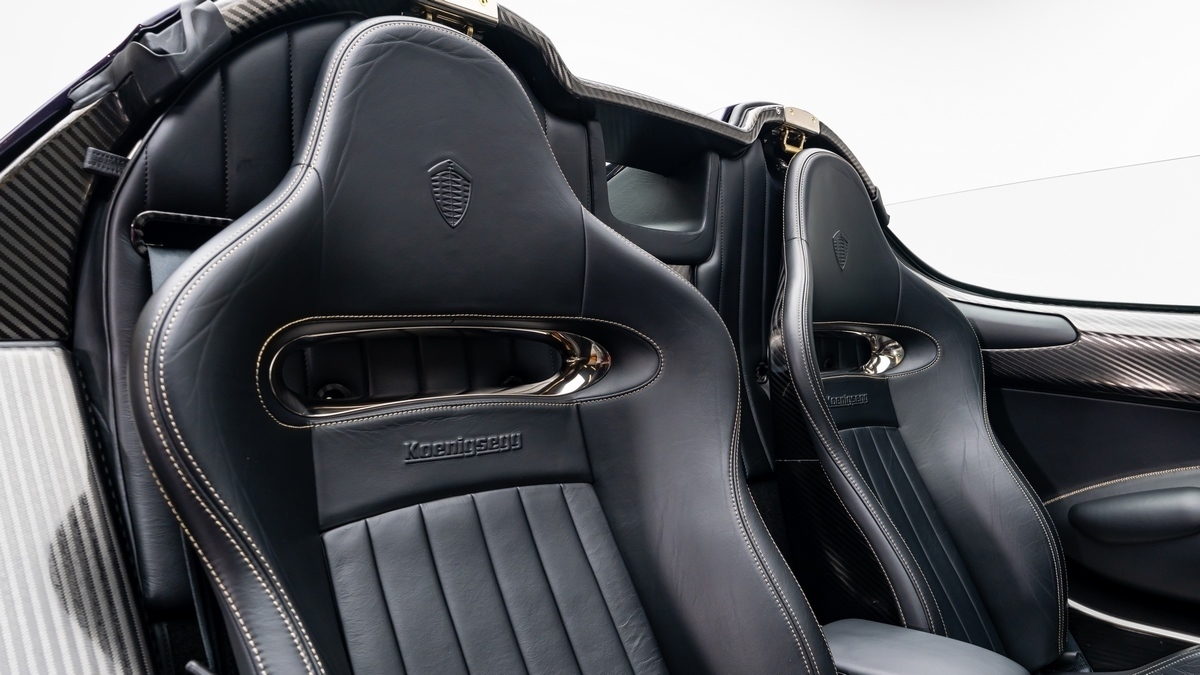 This specific example’s purple-tinted carbon bodywork, gold leaf striping, and Desiato leather interior elevate its investment-grade vehicle status, positioning it among the most desirable Regeras ever built. Comparable listings at leading hypercar auctions consistently indicate upward value trajectories, driven by limited availability, timeless design, and Koenigsegg’s status as a boutique manufacturer focused on engineering authenticity.