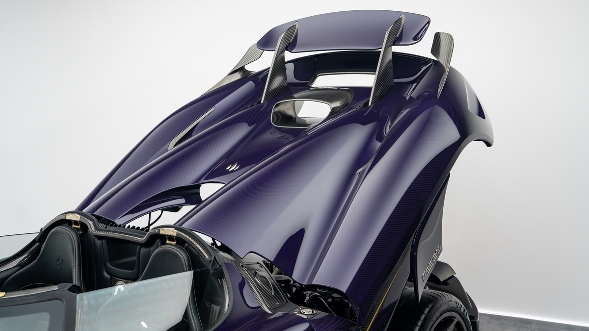 • Body Panels: Purple-tinted exposed carbon fibre