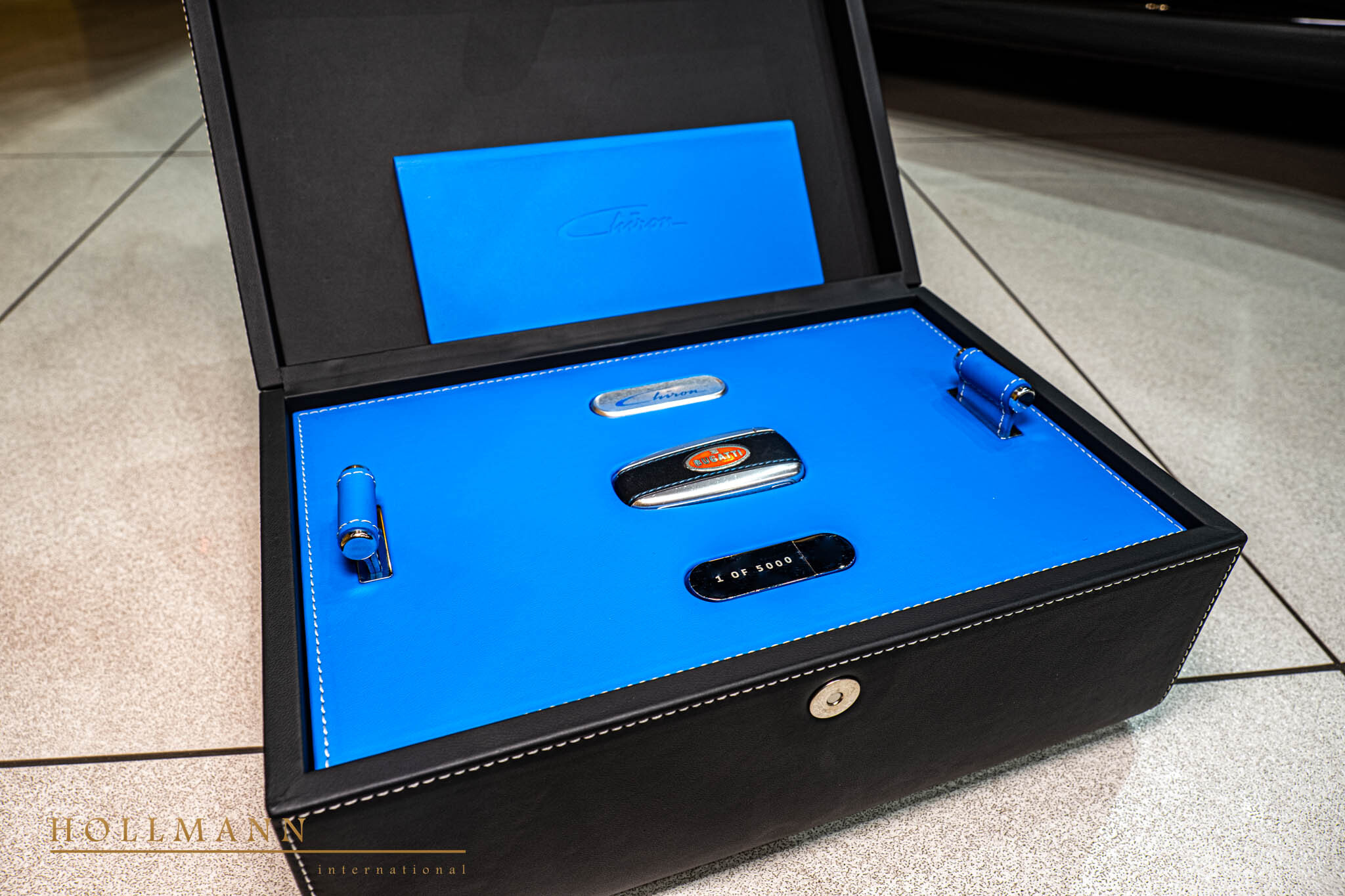 Hollmann International GmbH & Co. KG propose cet exemplaire exceptionnel de la Bugatti Chiron, affichant un faible kilométrage et une spécification unique en Carbone Noir et Bleu France. Les informations pour l'acquisition de cet actif sont les suivantes :