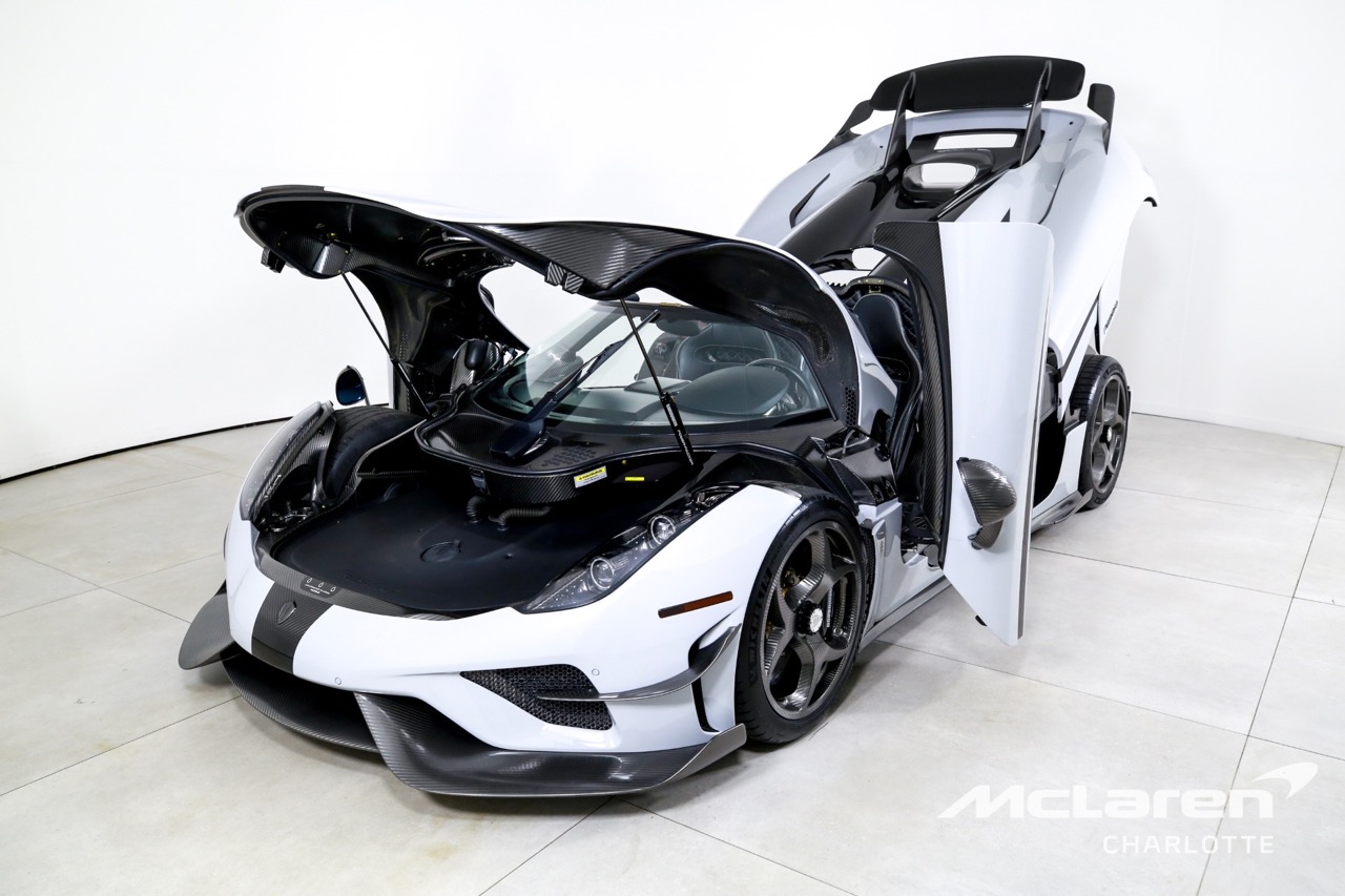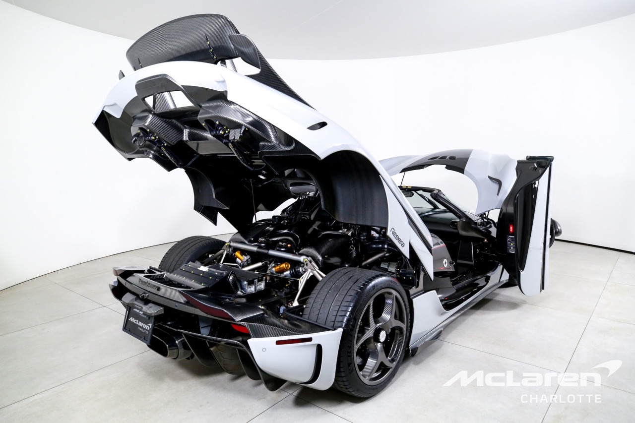 This 2020 Koenigsegg Regera presented by McLaren Charlotte gives you access to one of the most technically advanced hybrid hypercars produced during the last decade. With 4,168 miles, this example remains in a mileage range that appeals both to collectors focusing on long-term asset positioning and to buyers seeking the Regera’s distinctive driving characteristics. Its powertrain combines a 5.0-litre twin-turbocharged V8 with three electric motors through the Koenigsegg Direct Drive system, enabling uninterrupted acceleration and high-efficiency torque delivery without the conventional gear ratios of a standard transmission.