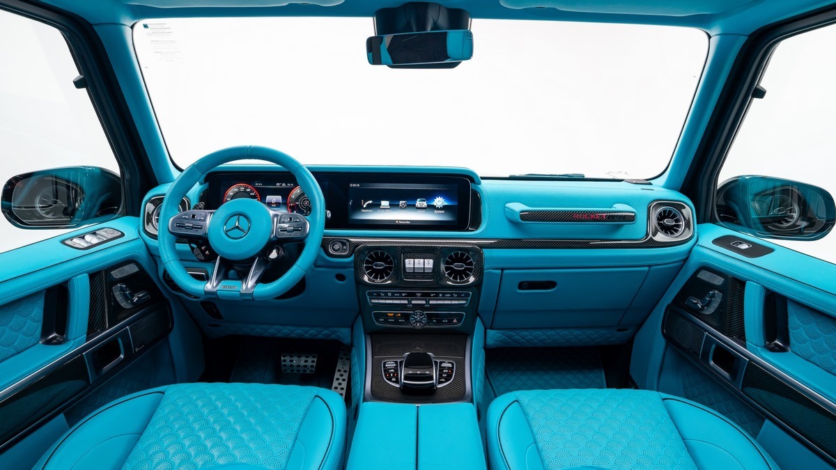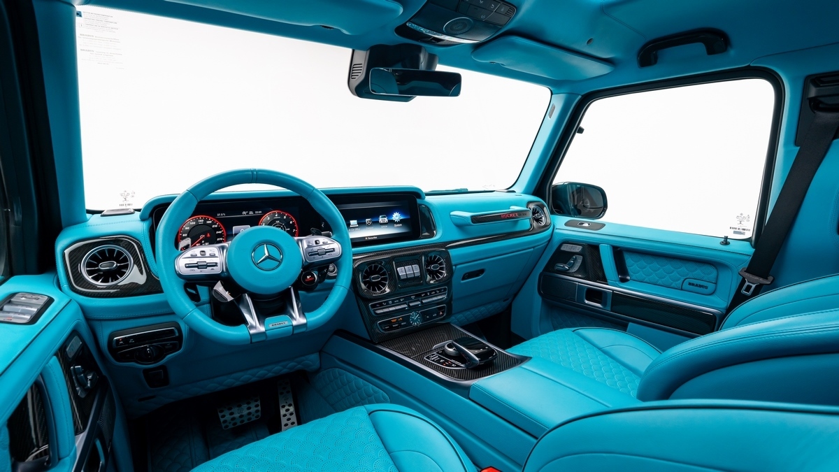 The cabin is a true BRABUS Masterpiece, tailored to reflect a bespoke vision of speed and refinement. While the exterior is Black, the Interior is finished in a striking Blue fine leather, providing an unexpected and elegant contrast. This is a fully hand-crafted environment, detailed with crest-shaped quilting and precise decorative topstitching. Enhancing the motorsport aesthetic are the high-gloss BRABUS Carbon Interior Packages, which extend across the door handles, shift paddles, and centre console. The rear passenger experience is elevated by the installation of BRABUS rear individual seats with multi-contour adjustment, replacing the standard bench, rounding off the bespoke luxury experience. A unique detail for the enthusiast is the BRABUS speedometer calibrated to 300 km/h, hinting at the vehicle’s immense, electronically governed potential.