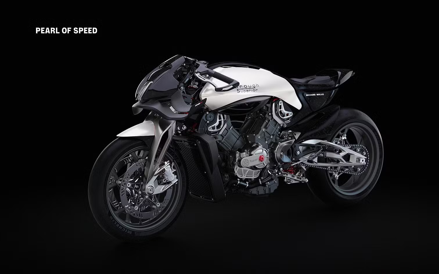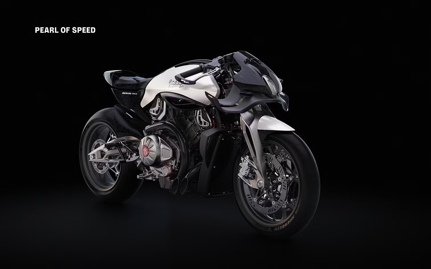 We present a profoundly exclusive motorcycle proposition: the Brough Superior RMB01 RICHARD MILLE PEARL OF SPEED. This machine is a direct result of the collaboration between the legendary British motorcycle manufacturer, Brough Superior, and the elite Swiss watchmaker, Richard Mille. The offering is presented under the specific RMB01 designation, confirming its place in a strictly Limited Edition of only 1 of 150 worldwide.