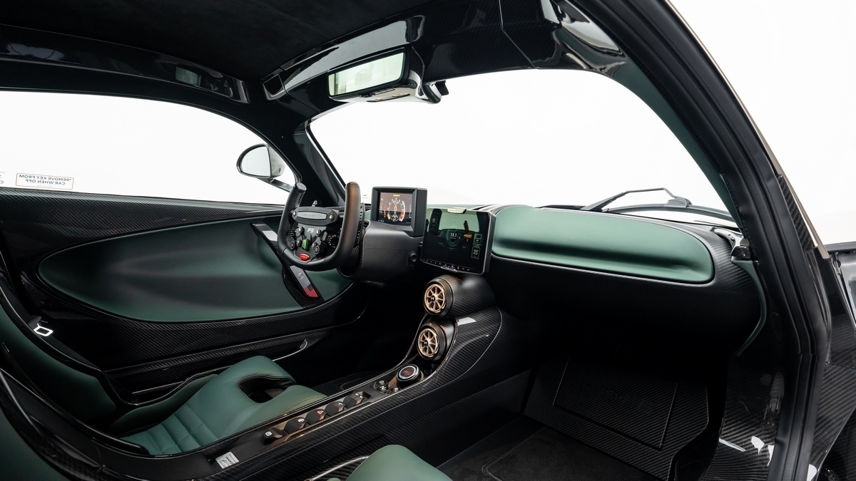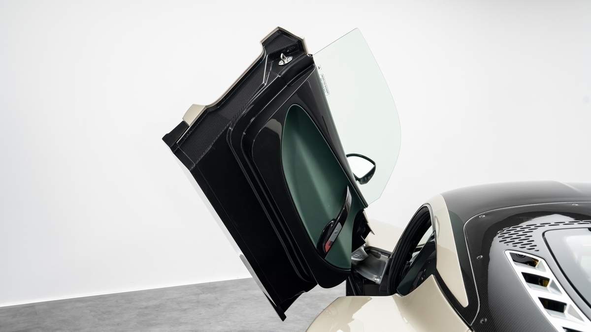 The exterior finish in Champagne gives this example a discreet yet purposeful presence. It avoids visual excess while allowing the sculptural bodywork to speak for itself. The cabin follows the same philosophy. The Green and Black interior offers a contrast-driven environment that prioritizes driver focus, with materials and layout engineered around performance use rather than ornamentation. This is not a car designed to impress through decoration, but through substance.