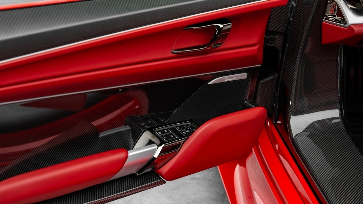 The interior is executed in Garnet Red leather throughout with silver piping and silver accent seat belts.