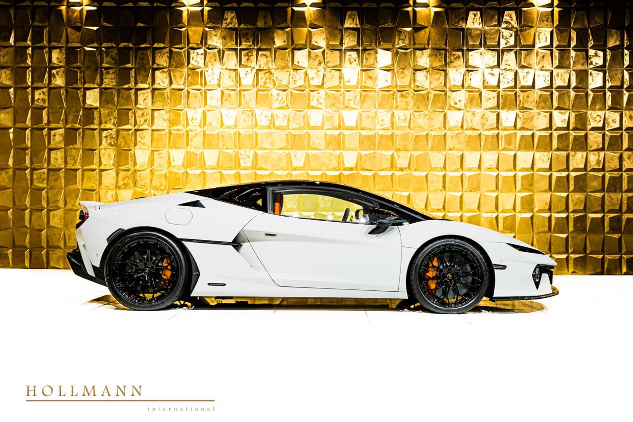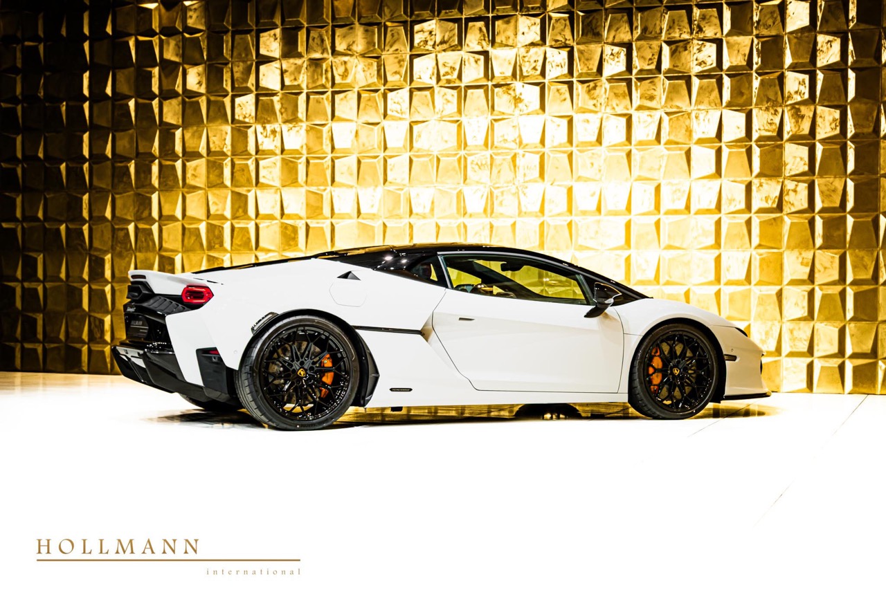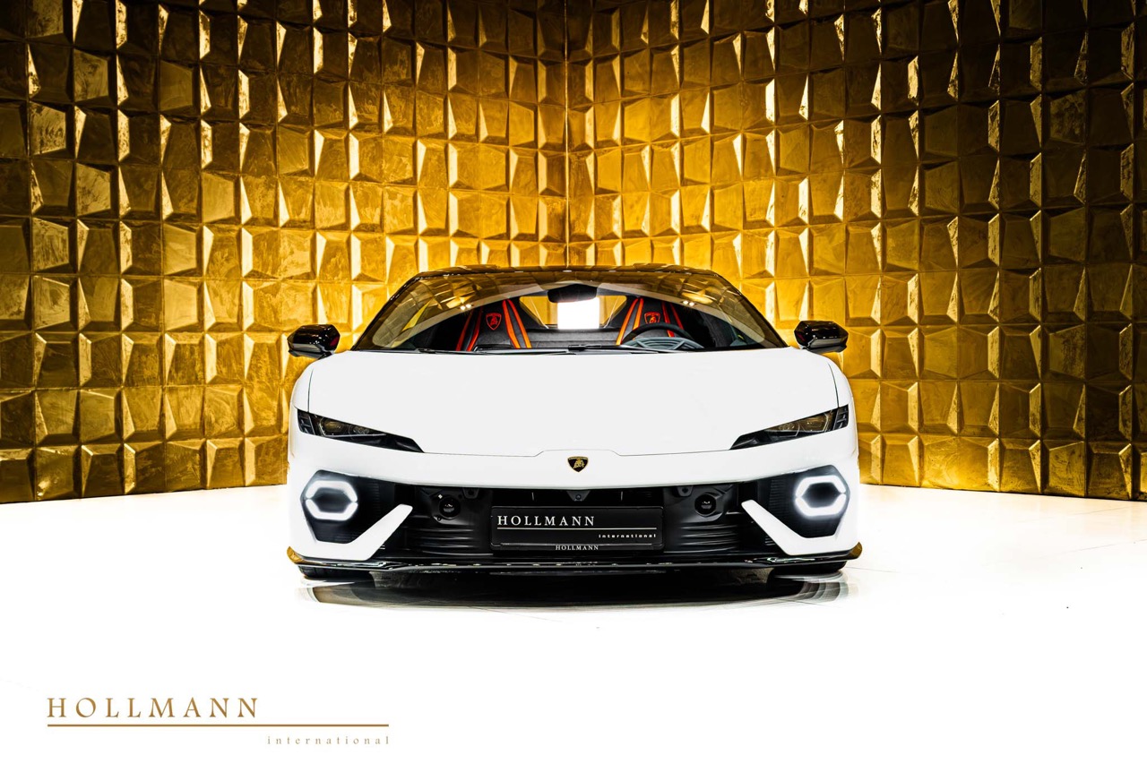 The Lamborghini Temerario represents the Sant'Agata manufacturer's most precise expression of high-voltage hybrid architecture applied to a mid-engine coupé format. This example, listed at €355,000 Net Export and presented with 50 kilometres on the odometer, is available in stock for immediate worldwide export. It arrives in Bianco Monocerus over a dual-tone Nero + Arancio Apodis interior, a pairing that balances the clinical clarity of white against the thermal precision of black and orange accents within the cabin.