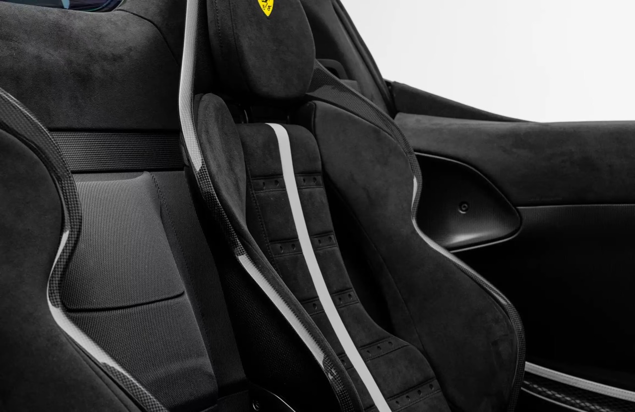 The interior is configured in Black, maintaining a focused and driver-oriented environment. The layout prioritises control, ergonomics, and material precision, consistent with Ferrari’s XX Programme philosophy translated into a road car context.